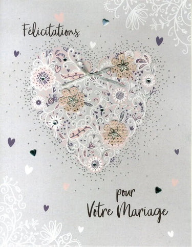Message à l'intérieur rédigé en français : Que l’amour et le bonheur que vous partagez ne cessent de grandir ! Félicitations à vous deux.