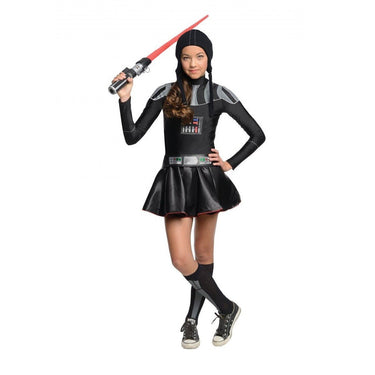 Ce costume adolescente Star Wars donnera à votre enfant l'allure du célèbre Seigneur Sith ! La robe noire est couverte d'un imprimé blanc représentant le célèbre personnage et vient avec une ceinture, une coiffe et une chaussette au genou. Des accessoires parfaits pour complèter à merveille le look!