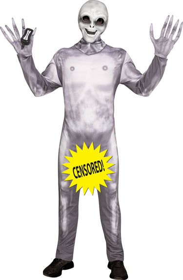 Avec sa combinaison extraterrestre et son masque d’alien à gros yeux noirs, ce déguisement provoquant et irrévérencieux est destiné à un public averti qui aime les costumes audacieux et humoristiques.