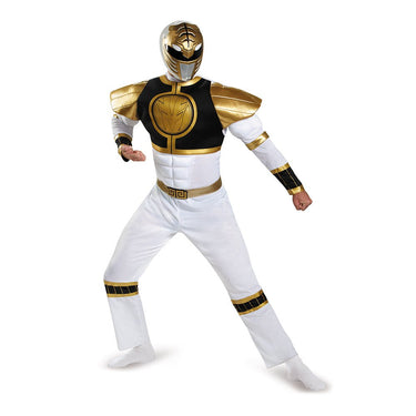 Transformez-vous en héros avec le Costume Adulte Classique Musclé - White Ranger de Power Rangers - Mighty Morphin pour Halloween. Inclut un costume musclé et détaillé pour les fans de tous âges. Devenez le ranger blanc et défendez la galaxie avec style!