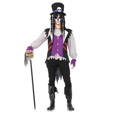 Ayez l’air mystérieux et fougeux dans ce costume adulte Prêtre Voodoo. Avec une veste, une chemise et un gilet en lambeaux et des détails tels que des têtes de mort, un collier de dents, des gants et un bonnet, vous serez prêt pour une aventure audacieuse et risquée. Le look parfait pour les soirées masquées!