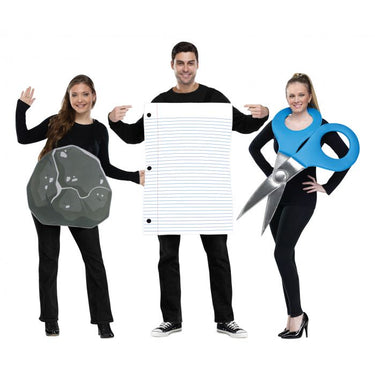 Faites sensation en groupe avec ce déguisement Roche Papier Ciseaux pour adultes ! Ce costume 3-en-1 ultra amusant est parfait pour un trio d'amis ou de collègues et promet fous rires et photos mémorables à Halloween, lors de fêtes costumées ou d’événements à thème.