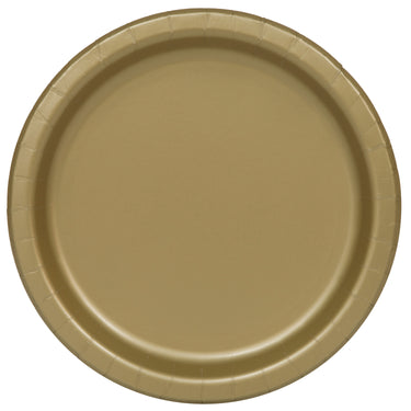 Get party-ready with this pack of 16 gold paper plates. Quick to set up, these plates are durable and long-lasting, ensuring a fun-filled party. Their ideal 9-inch size provides plenty of space for all your dishes.