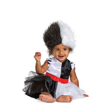 Transform your baby into a mini Cruella with this toddler costume! The costume features all of Cruella's iconic details, including the furry coat and two-tone hair. Your little one will be perfectly dressed for a Halloween night or costume party.