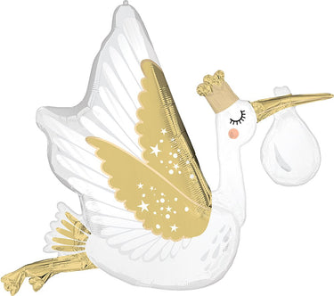 Celebrate baby's arrival with the Supershape Mylar Stork Balloon ! Perfect for a baby shower , birth celebration or baby birthday , this stork balloon will add a charming and festive touch to your event. Made from high-quality Mylar , this balloon is designed to be strong, durable and offer a vibrant visual, while being easy to inflate with air or helium. Add this Supershape Stork Mylar Balloon to your decorations and make baby's arrival unforgettable. It will add a touch of elegance and joy to your celebrations.