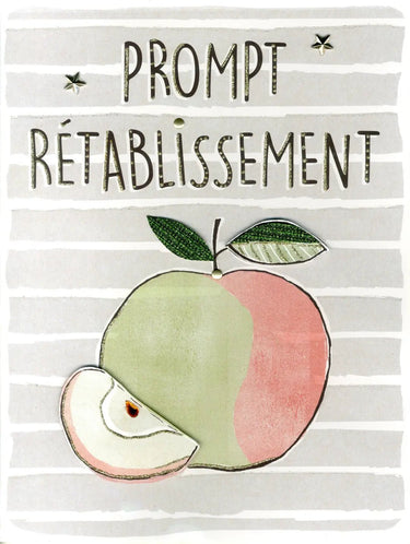 Message inside written in French: When we are sick, it is a way for the body to tell us to slow down. So, take this opportunity to rest as much as possible. Get well soon!