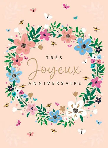Carte de fête - Très joyeux anniversaire (fleurs)
