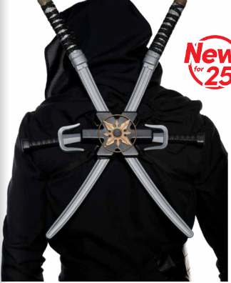Step into the world of martial arts with this complete ninja set including two swords, one sai, ninja stars, and a convenient sheath backpack to carry them all. This realistic set is the perfect accessory to complete your ninja costume, whether for Halloween, a carnival, or a costume party.