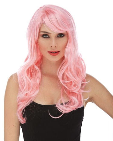 Long curly pink wig for women – pastel or bold pink, burlesque style