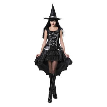 Step into the magical world of Halloween with this adult witch costume! Featuring an elegant black dress and a matching pointed hat, this timeless and classic outfit is perfect for portraying a mysterious and enchanting witch.
