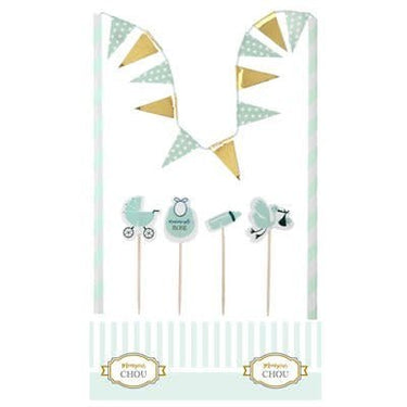 Decorate the cake of the future little baby with its magnificent cake decorations in soft colors.