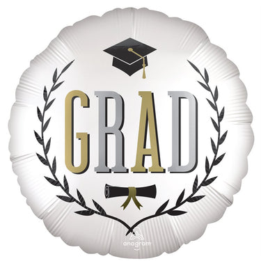 Célébrez la fin d’un chapitre avec élégance grâce à ce ballon mylar rond de 18 pouces “Grad” aux couleurs or, blanc et noir. Classique et chic, il est parfait pour une décoration de graduation raffinée, peu importe le niveau scolaire.