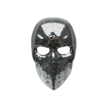 Light up the dance floor (or your Halloween night) with this one-of-a-kind disco hockey mask! Covered in individual mirrored tiles like a disco ball, it blends the boldness of a hockey mask with the glitter of the ‘70s. Perfect for retro-themed parties, standout costumes, or dazzling looks that steal the spotlight.