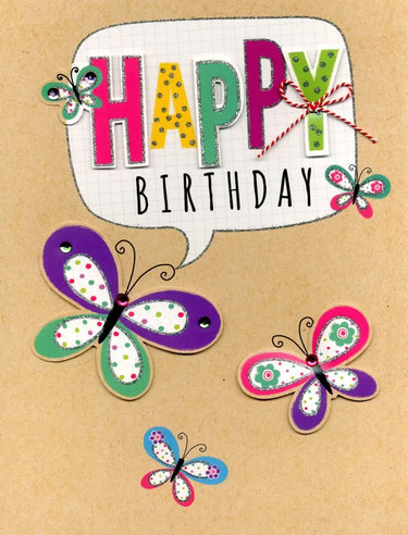 Souhaitez un anniversaire tout en douceur avec cette carte "Happy Birthday" décorée de papillons colorés
