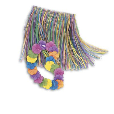 Multicolor Child Luau Skirt & Lei Set – Hawaiian Costume for Kids