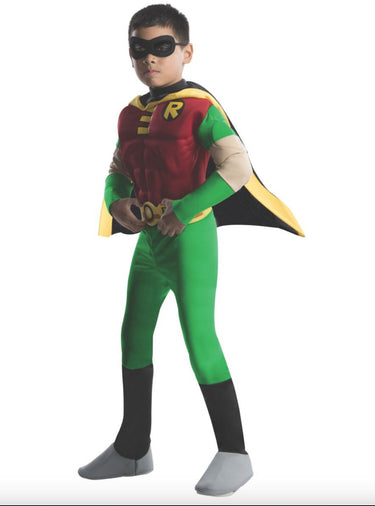 Take control of the night with this Teen Titan Robin Deluxe costume for kids. With a unique muscular suit, your child will be ready to take on any challenge and take on any adversary. Live the great adventure!