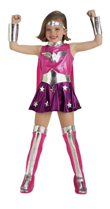 Made especially for young Wonder Woman fans, this Deluxe Child costume for pink children is made with quality and durable clothing. The bold pink color and popular logo provide a wonderful color combination that will bring out your child's fashionable heroine.