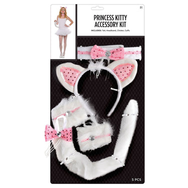 This adult kitten princess costume accessory set includes ears, collar, tail and cuffs to create a completely unique look. The elements are made with soft, durable materials and are easy to set up. A great option for theme parties, fancy dress and more.