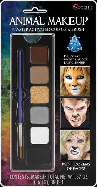 Transform into a lion, tiger, butterfly, or panda with this Woochie water-activated makeup palette! Featuring 6 vibrant animal-inspired colors and a brush, it’s perfect for fun and expressive face painting. Easy to use—just add water!