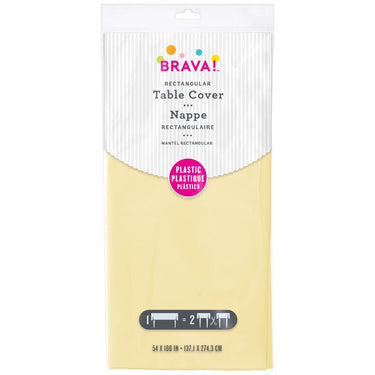 This rectangular plastic tablecloth is a great choice for entertaining and decoration. Made of premium plastic with its vanilla color , it measures 54" x 108" and provides complete, neat coverage for your table. Be ready to impress your guests!