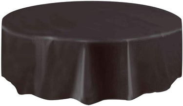 Decorate your table with elegance with this magnificent 84" black round plastic tablecloth! Bring a touch of sophistication to any occasion with this quality product. Durable and reliable, its timeless color adapts to all styles. Chic and exceptional, round plastic tablecloths will be a must at your next party!