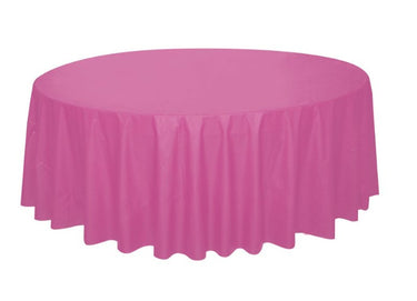 Bring out the beauty of your table with this 84" round plastic tablecloth in a hot pink color. Protect your table while adding a touch of warmth and charm to your decor. Perfect for entertaining and special events.