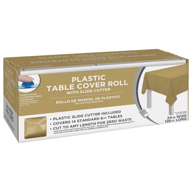 54in x 126ft Plastic Tablecloth with Cutting Blade - Gold
