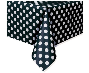 Plastic Tablecloth 54"X108" - Black Polka Dots