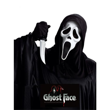 Step into the iconic world of the Scream saga with this Ghost Face® with prop knife set. This kit includes the famous white mask with its terrifying stare and a prop knife to complete your costume. Perfect for Halloween, a horror-themed party, or a cosplay of the legendary masked killer.