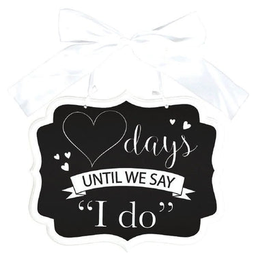 This 9.25"x11" MDF sign is decorated with a slate of white borders and bears the inscription "days until we say I do". Offering a smooth, hard-wearing finish, it is ideal for weddings and has the potential to be kept as a keepsake.