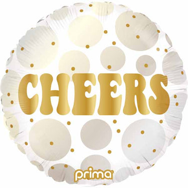 Apportez une touche d’élégance et de festivité à votre décoration avec ce ballon rond de 18 pouces, au design raffiné en blanc, or et argent, portant l’inscription brillante "Cheers".
