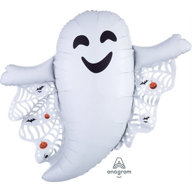 This SuperShape Mylar Balloon, shaped like a Halloween ghost, is a great way to add a special touch to your party decoration.