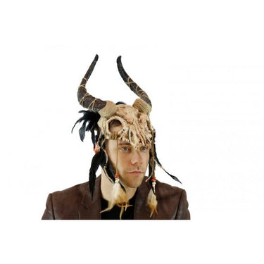 Embody a mystical and frightening spirit with this goat skull voodoo headpiece with large horns! Inspired by occult rituals and shamanic traditions, this unique piece is perfect for completing a Halloween costume, a voodoo outfit, or a terrifying tribal look.