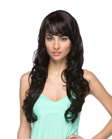 Unleash your dark side with the MELROSE black wig, a stunning accessory for bold and dramatic transformations. With its long voluminous curls and deep black shade, this wig is perfect for cosplay, witches, vampires, gothic divas, or Halloween characters.