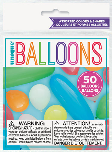 Bring color and fun to your celebration with this pack of 50 assorted latex balloons! Featuring a variety of colors and sizes, this set is perfect for creating a vibrant and festive party atmosphere.