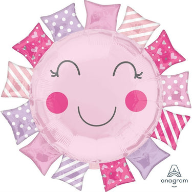 Un ballon en mylar de 25po en forme de soleil rose. Il s'agit d'une excellente option pour les fêtes spéciales, comme un baby shower.
